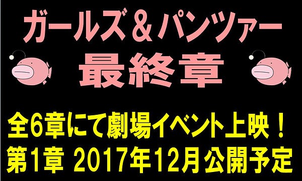 在今年8月底时,《少女与战车》的官方宣布了「少女与战车最终章」动画确定制作,近日官方在「第20回大洗あんこう祭」上终于正式宣布了此次最终章的内容??6部剧场版!
