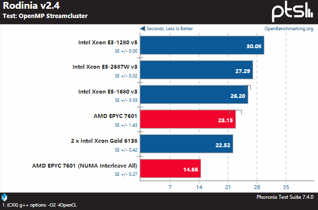 – AMD EPYC 7601 (NUMA Interleave All): Scaling Governor: acpi-cpufreq ondemand