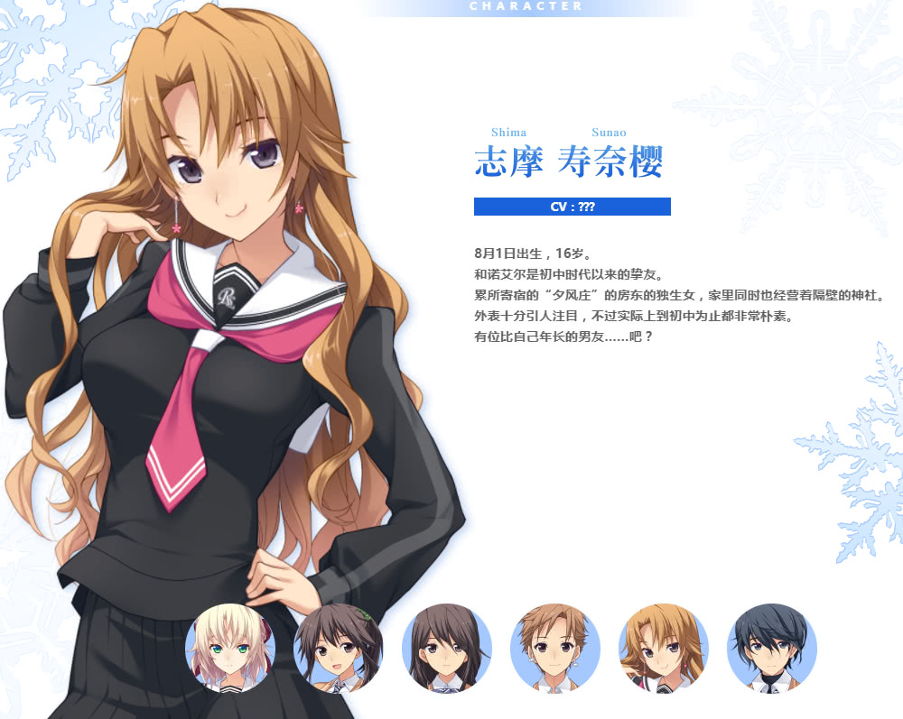 与诺艾尔自国中时就是好友。是累所寄宿的「夕?庄」房东的独生女,家里同时还经营着隔壁的神社。升上高中后外表女大十八变,非常亮眼。有个年长的男友。的样子。