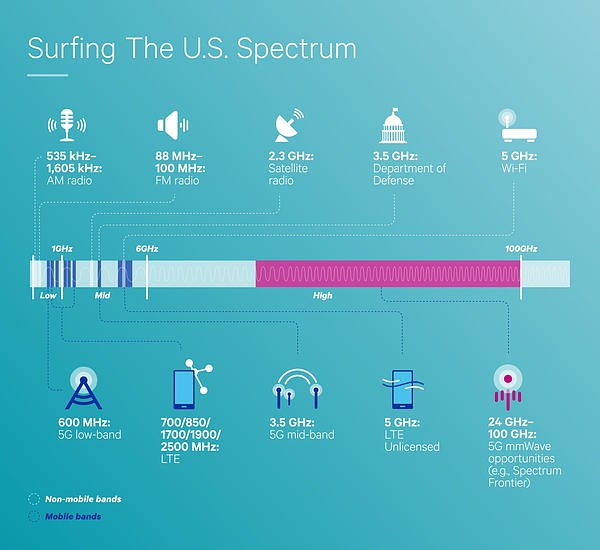 可以?到 5G 除了我?一直提到的 28GHz mmWave ? Sub-6GHz 以外,其??有低於 1GHz 的??。