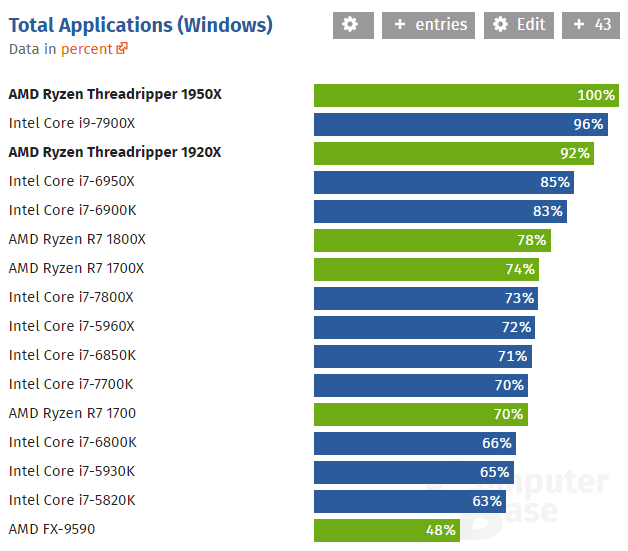 AMD Ryzen Threadripper 测试: 1950X / 1920X 对决Core X 【Computerbase】