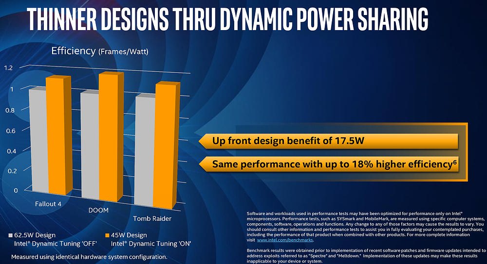 同时Intel称在KBL-G上用到了Dynamic Tuning Technology,更好地管理CPU/GPU的电源分配。