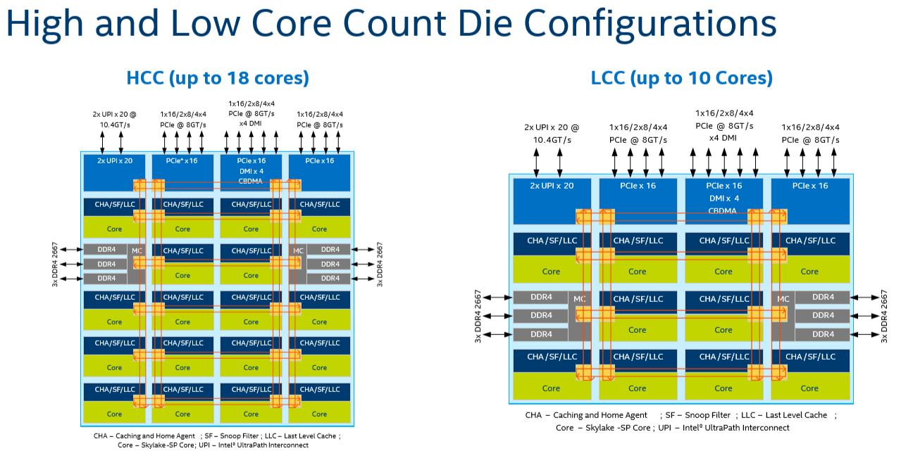 Skylake-SP所用的CPU核相较Skylake-S做了许多改动