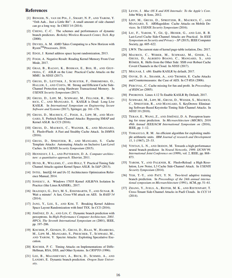 GPZ给了至少90天时间给各厂商进行修复准备(实际上有半年时间),然后才选择公布漏洞,给出的白皮书也很详细,结尾还有Reference,参考文献。